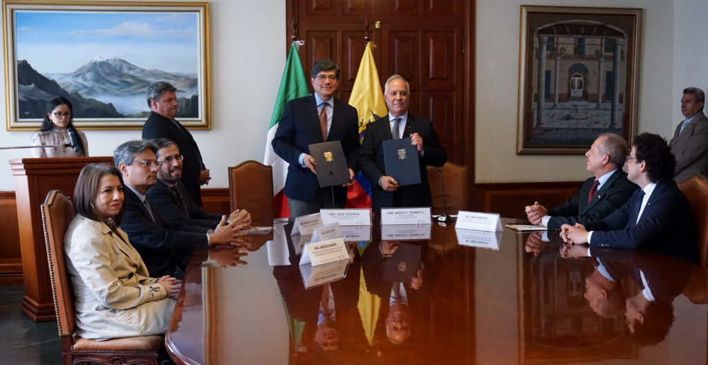 El pasado 19 de diciembre en el Salón de “Consejo de los Embajadores” del Ministerio de Relaciones Exteriores y Movilidad Humana (MREMH), se llevó a cabo la suscripción del documento de Programa FIEDS por parte del Canciller del Ecuador, Embajador José Valencia en representación de la República del Ecuador y el Embajador de Italia en el Ecuador, Marco Filippo Tornetta en representación de la República Italiana.